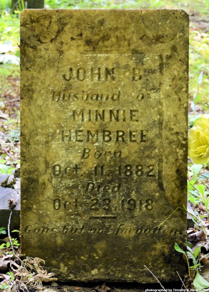 Inscription: h/o Minnie Hembree; Gone but not forgotten