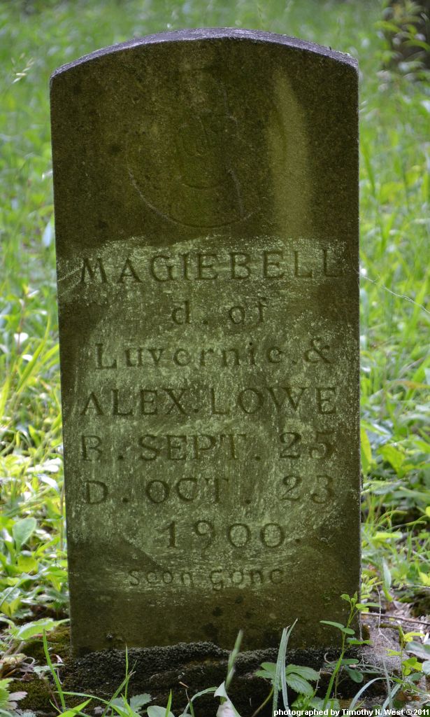 Inscription: d/o Luvernie & Alex Lowe; soon gone