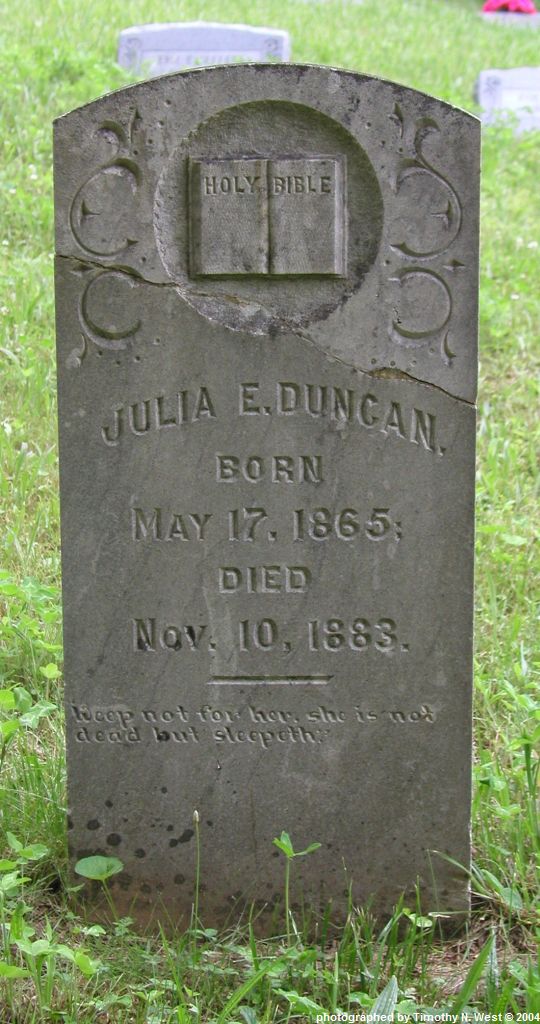 Julia E. Duncan, 17 May 1865 - 10 Nov 1883