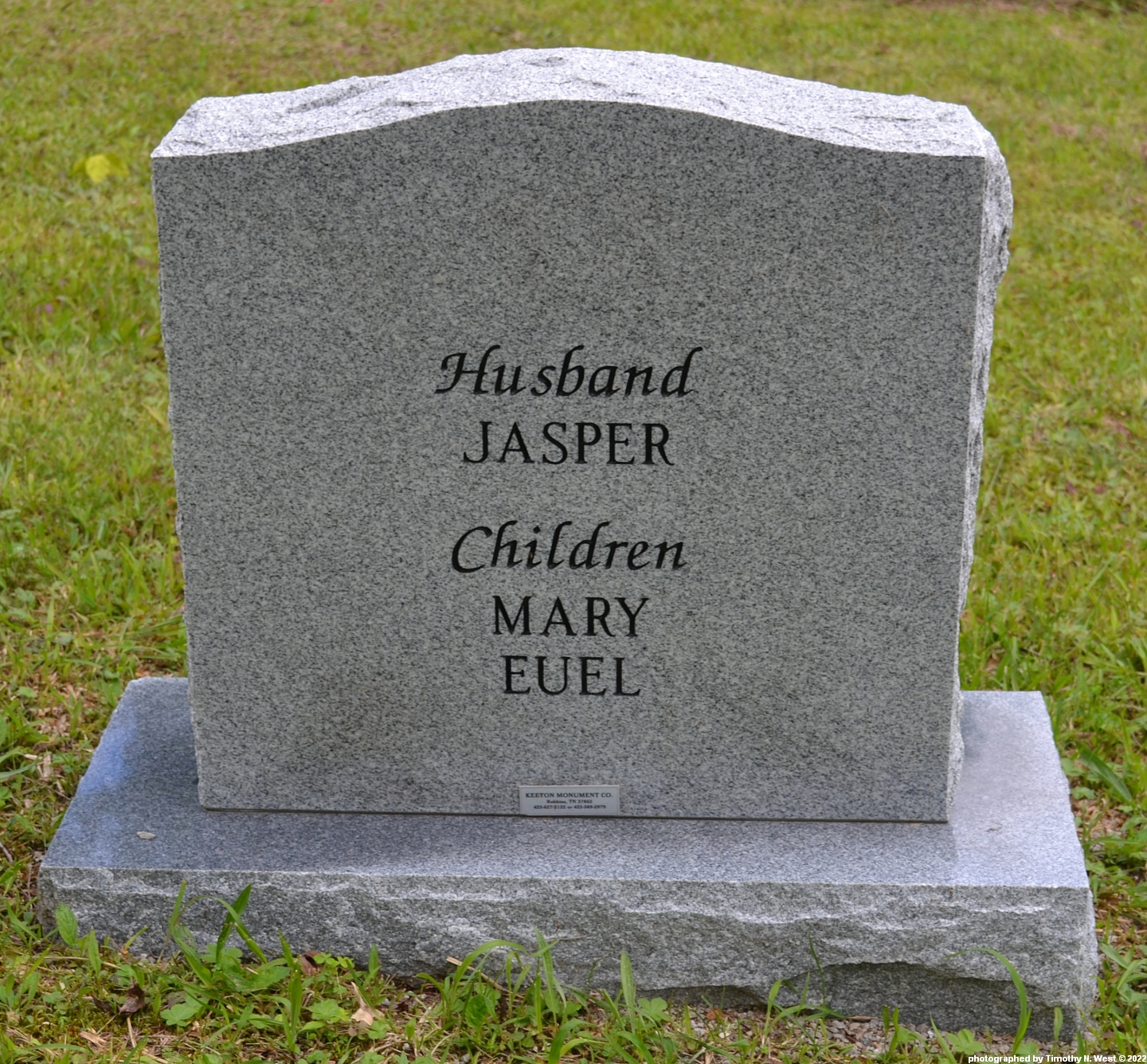 Inscription: (Lenie); No more sorrow, No more pain; Husband/Jasper; Children/Mary/Euel
