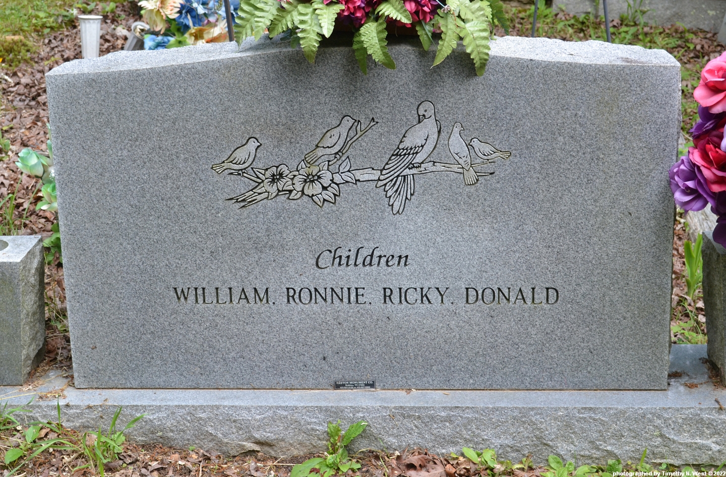 Inscription: Children/William, Ronnie, Ricky, Donald