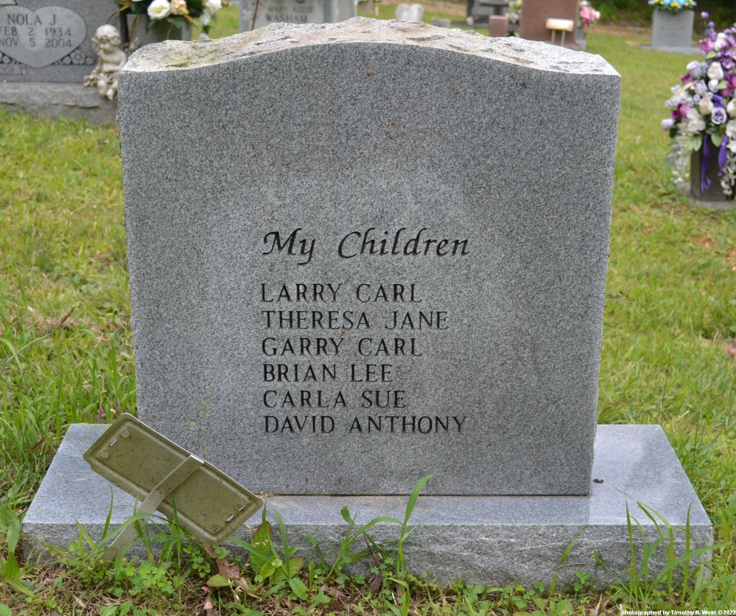 Inscription: s/o Lawrence E. and Emma J.; My children/Larry Carl/Theresa Jane/Garry Carl/Brian Lee/Carla Sue/David Anthony