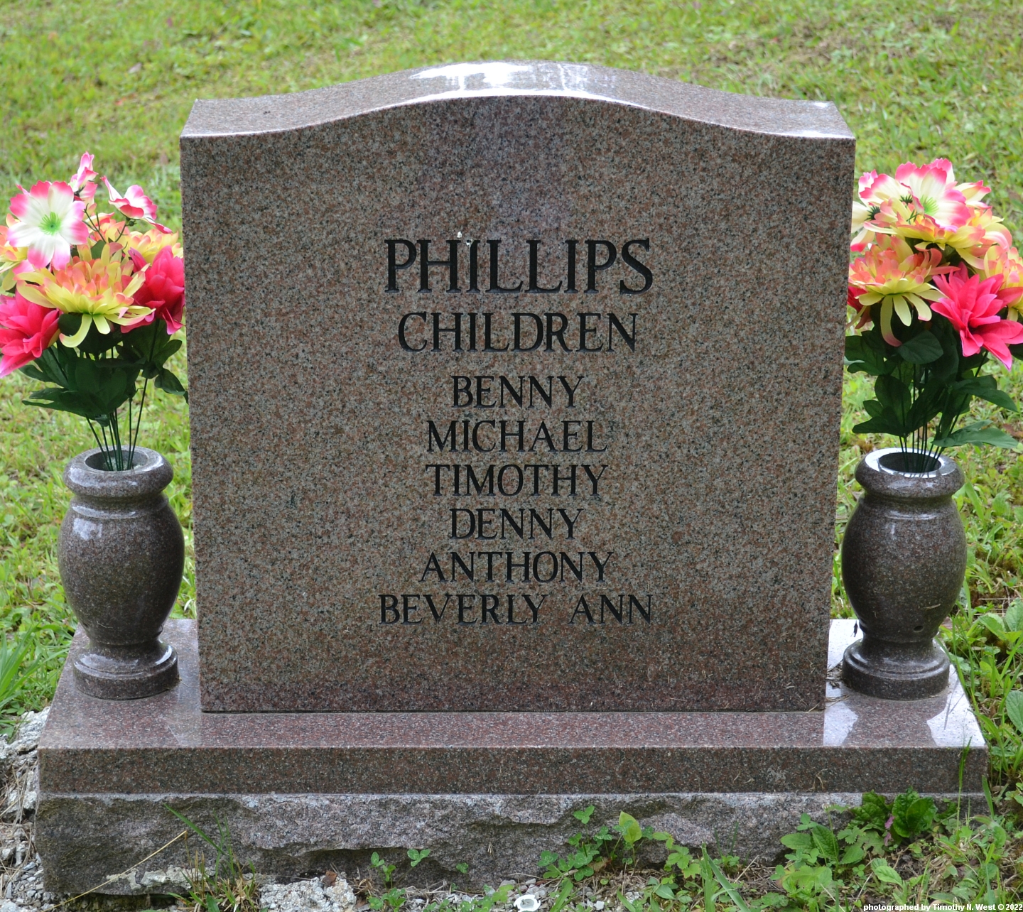 Inscription: Meet me in heaven; Children/Benny/Michael/Timothy/Denny/Anthony/Beverly Ann