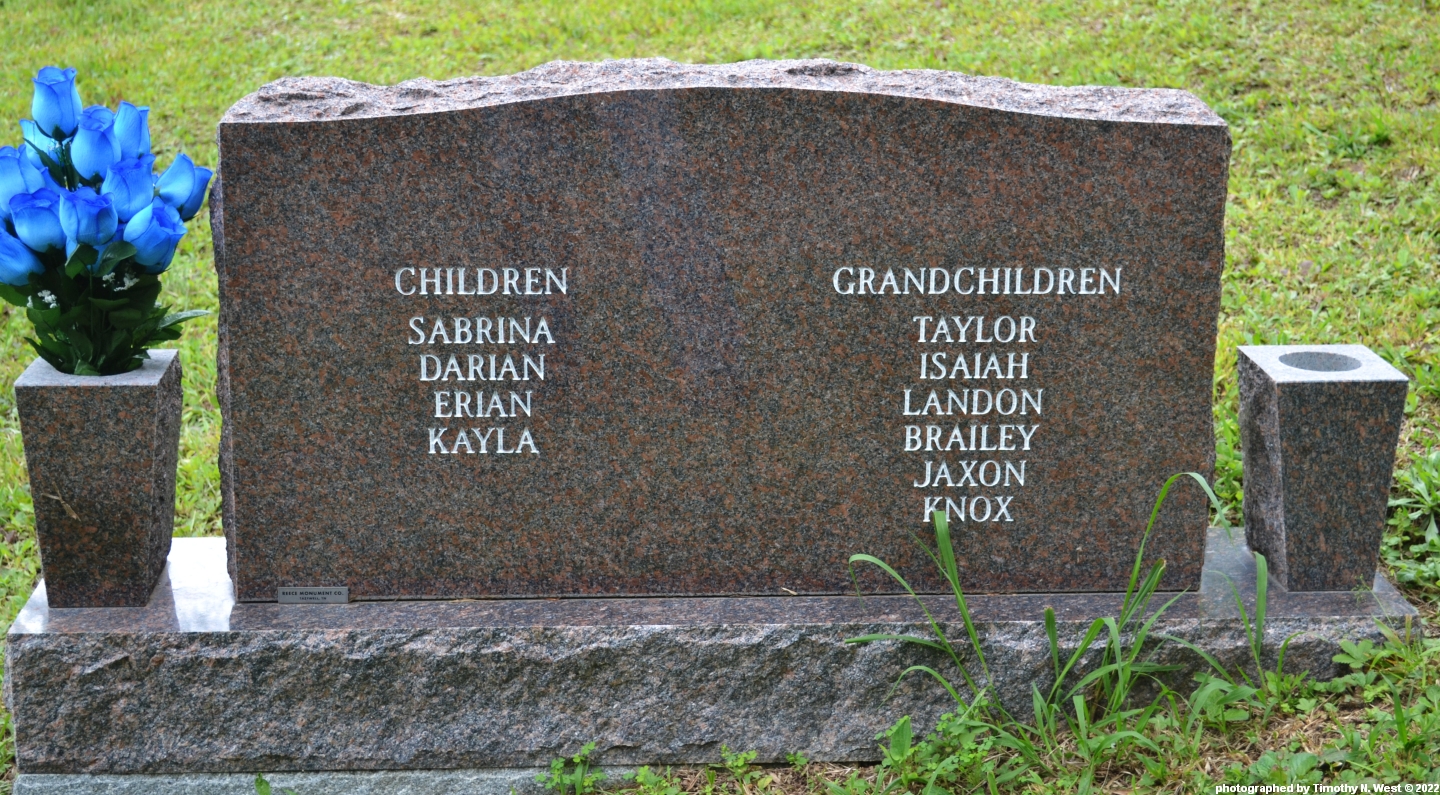 Inscription: Children/Sabrina/Darian/Erian/Kayla; Grandchildren/Taylor/Isaiah/Landon/Brailey/Jaxon/Knox