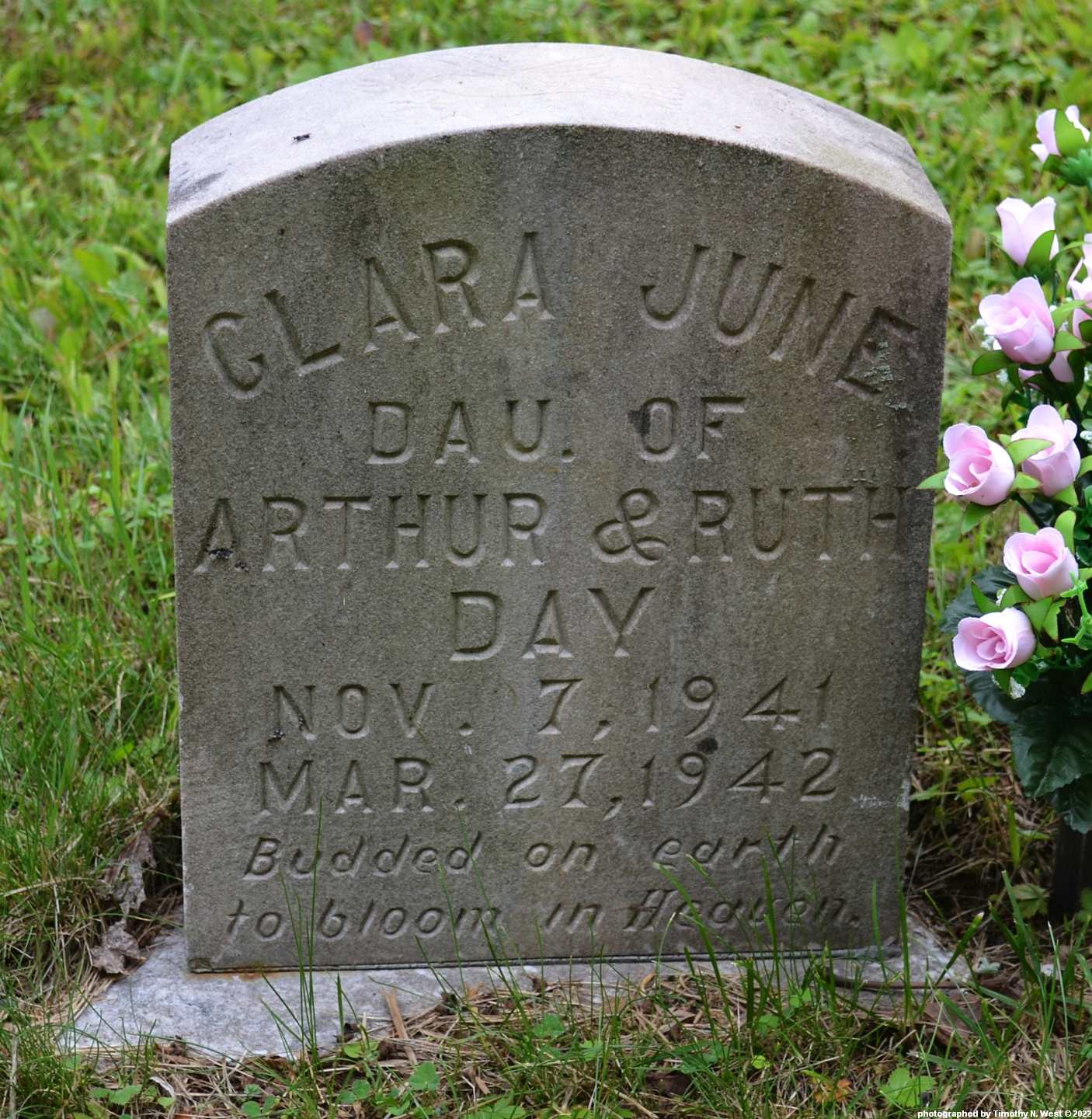 Inscription: d/o Arthur & Ruth Day; Budded on earth/to bloom in heaven