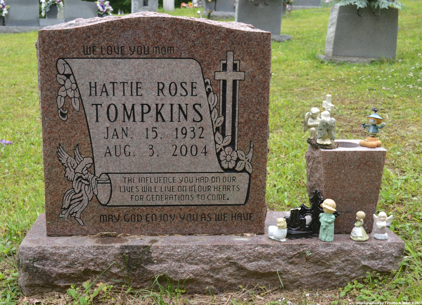 Inscription: We love you mom; The influence you had on our/lives will live on in our hearts/for generations to come; May God enjoy you as we have