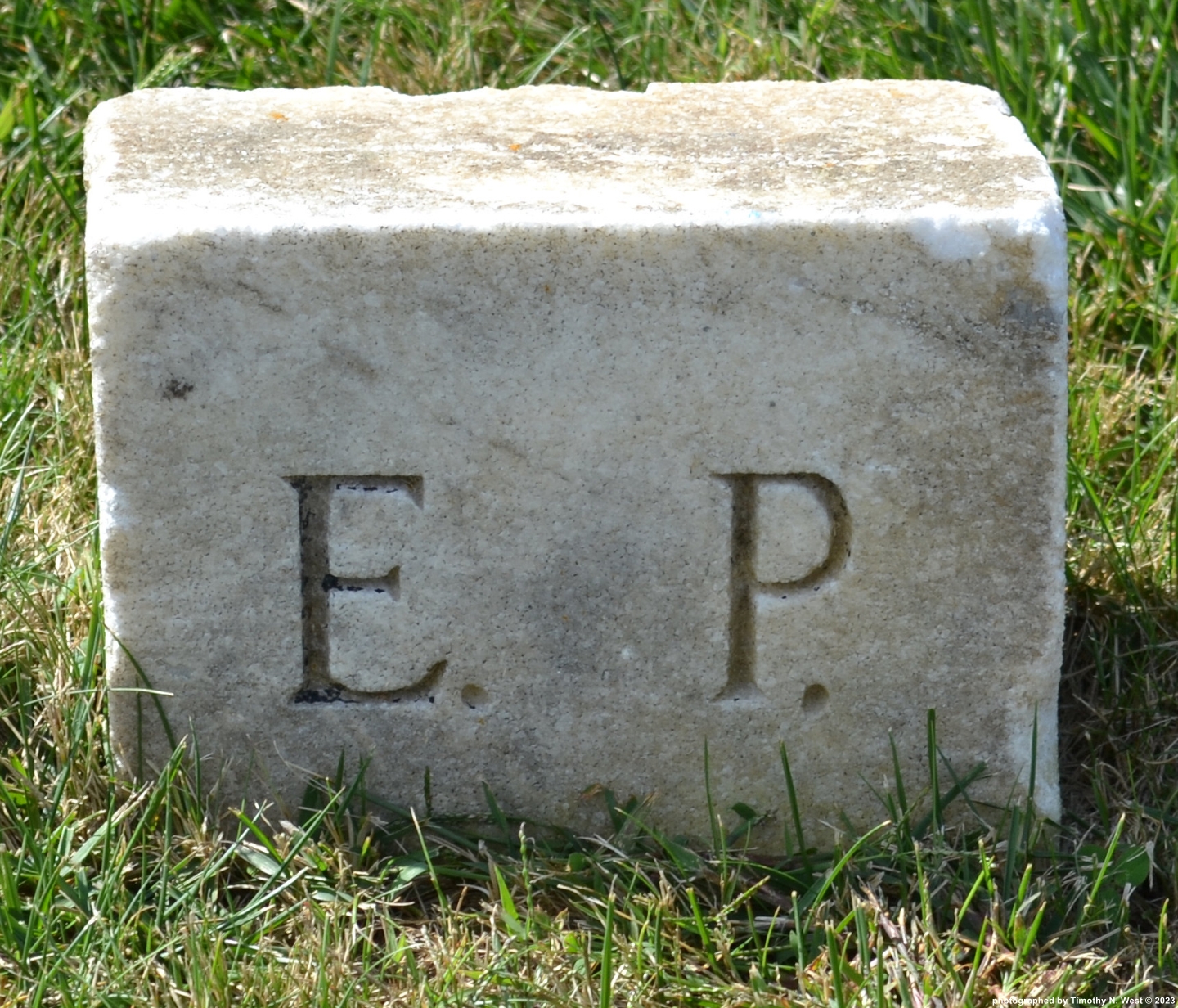 Transcriber Comments: looks like a footer stone but there is no headstone in the cemetery whose initials would be E. P.