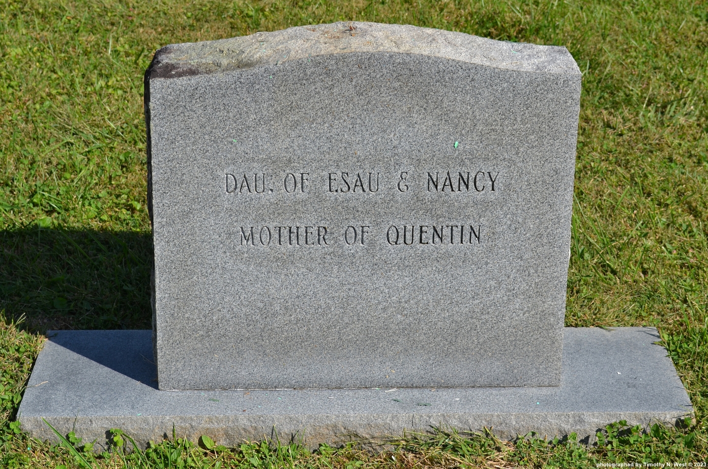 Inscription: d/o Esau & Nancy; Mother of Quentin; True courage