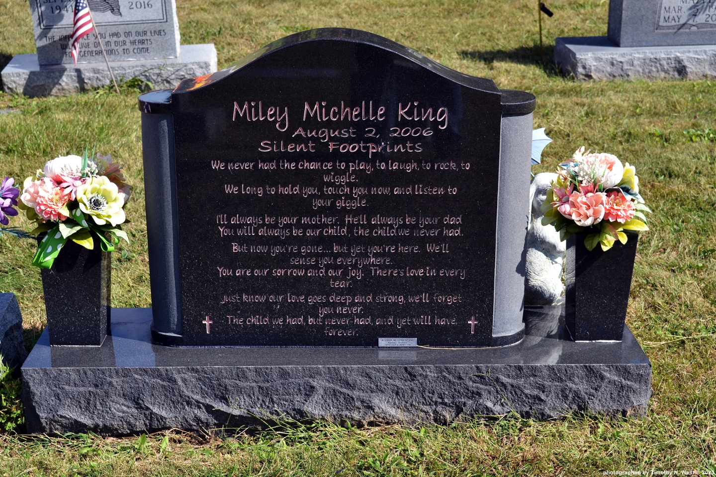 Inscription: d/o Dustin and Michelle; Silent Footprints
