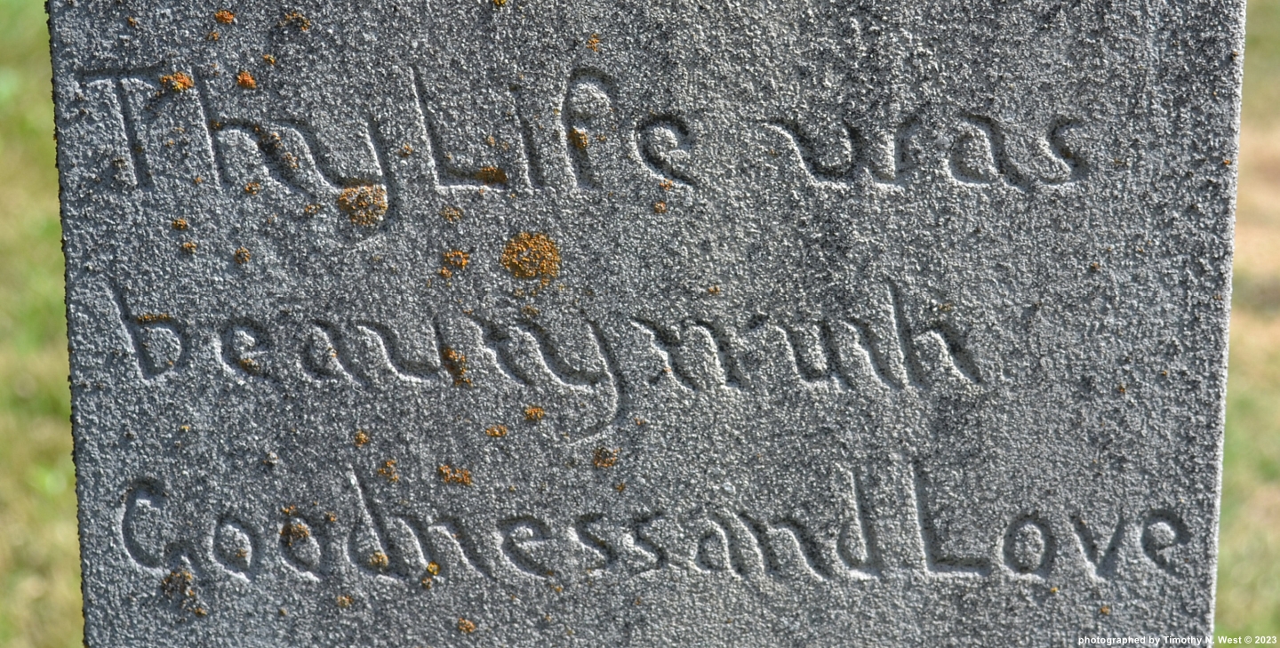 Inscription: Mother; Thy life was/beauty truth/goodness and love