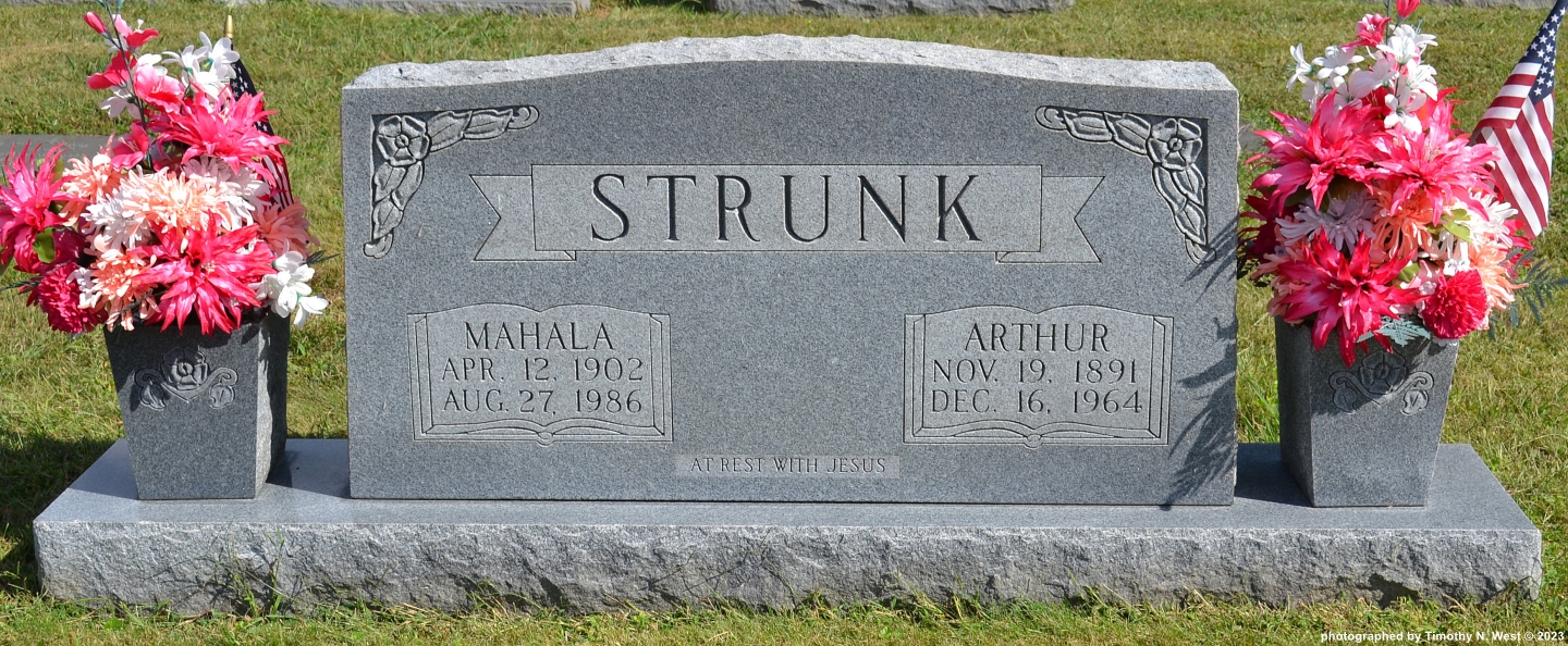 Transcriber Comments: SS: Mahala Strunk; Robert Bailey's 1994 "Cemeteries of Scott County, Tennessee" book lists the name as "Arthur Robert Strunk"