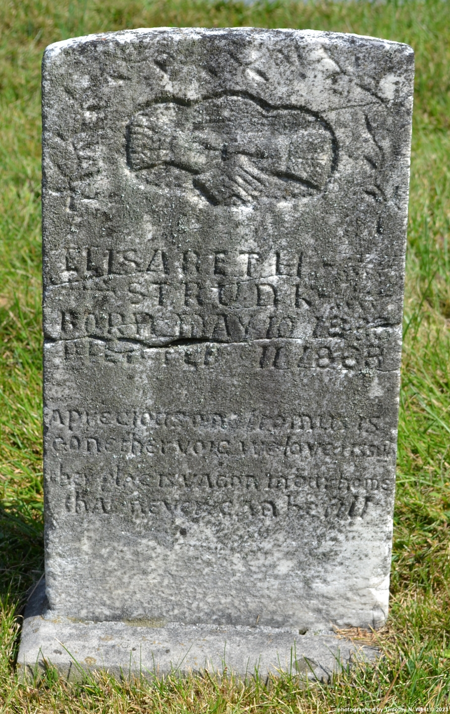 Transcriber Comments: many misspellings in the epitaph; Robert Bailey's 1994 "Cemeteries of Scott County, Tennessee" book lists the first name as "Elizabeth"